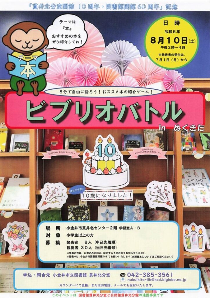 ◆2024/8/10(土) 14:00-16:00 公民館貫井北分館にて