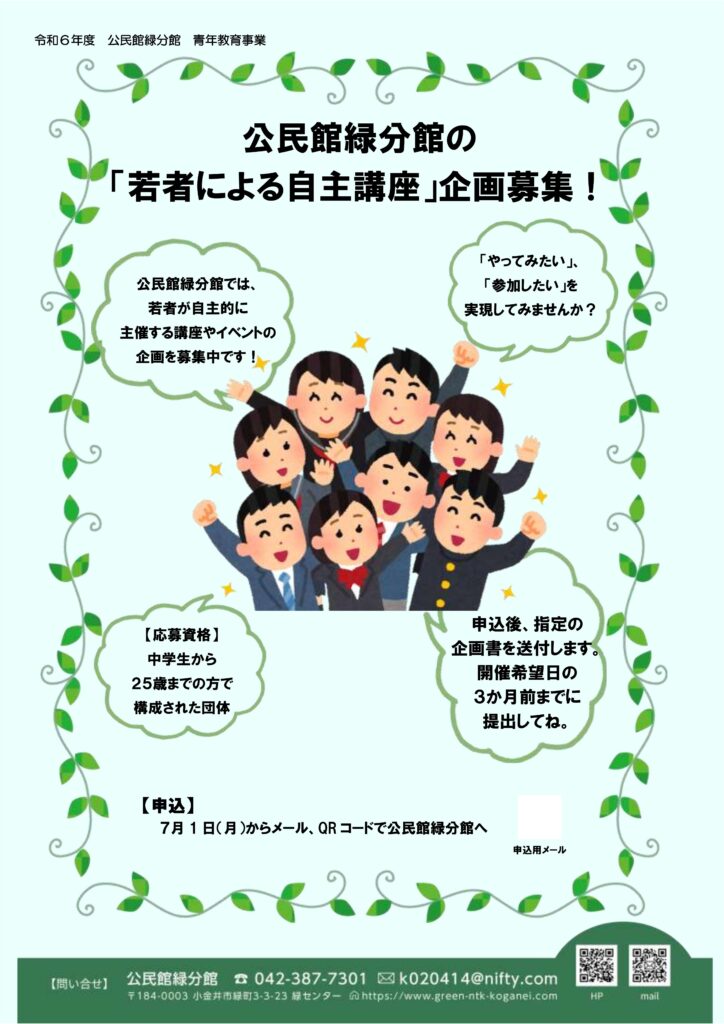 公民館緑分館の「若者による自主講座」企画募集!