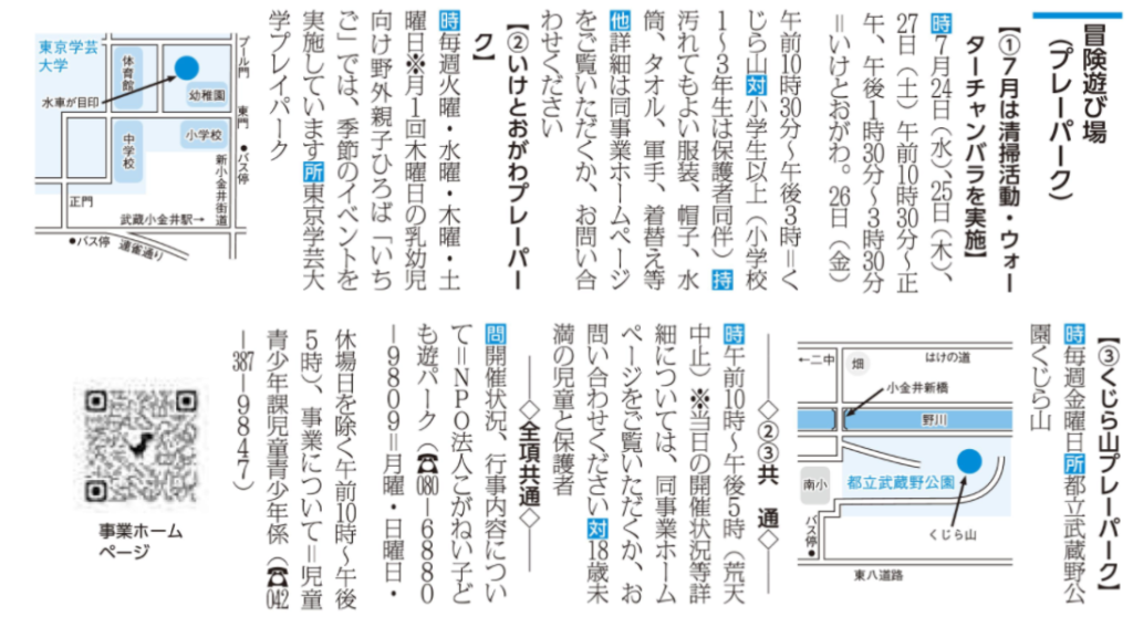 ◆2024/7/24(水),25(木),27(土)10:30-12:00,13:30-15:30 いけとおがわプレーパークにて