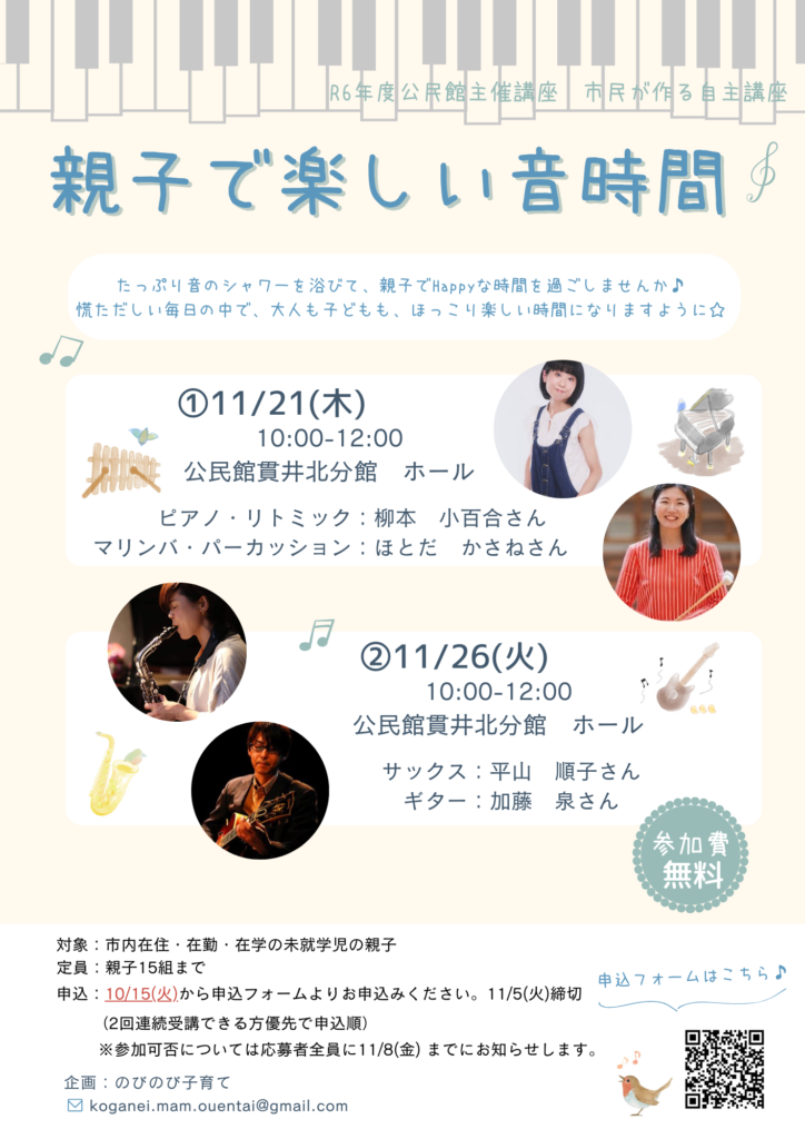 ◆2024/11/21(木)26(火)10:00-12:00 公民館貫井北分館にて 主催:のびのび子育て