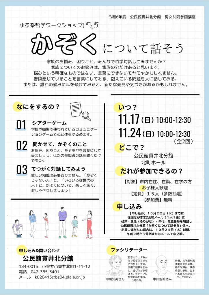 ◆2024/11/17(日)、24(日)10:00-12:30(全2回) 公民館貫井北分館にて