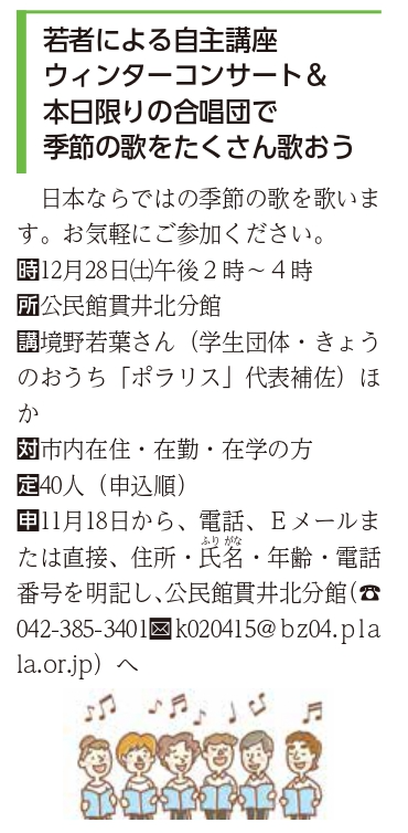 【講座】ウィンターコンサート&本日限りの合唱団で季節の歌をたくさん歌おう