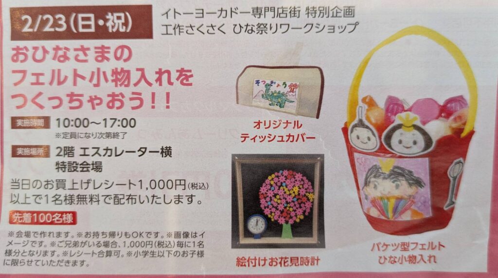 ◆20025/2/23(日・祝)10:00-17:00 イトーヨーカドー武蔵小金井店にて