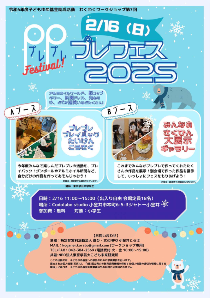 ◆2025/2/16(日)11:00-15:00 Codolabo studio(シャトー小金井1階)にて