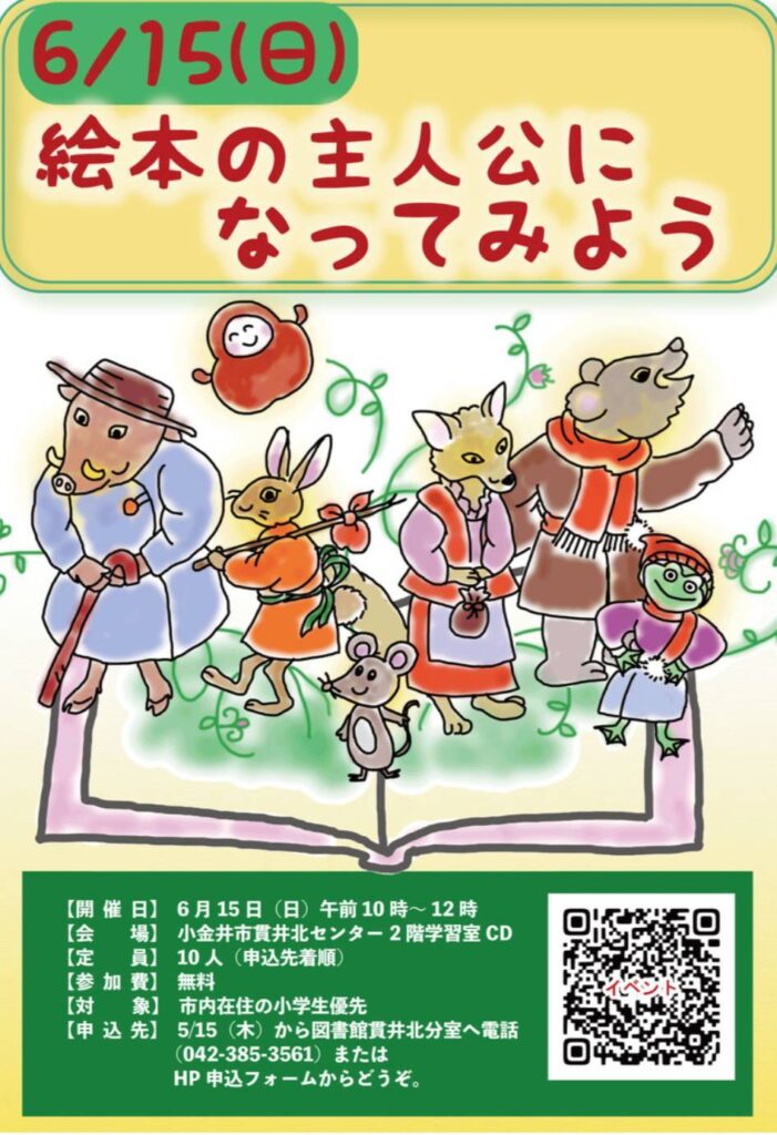 ◆2025/6/15(日)10:00-12:00 公民館貫井北分館にて 主催:小金井市立図書館