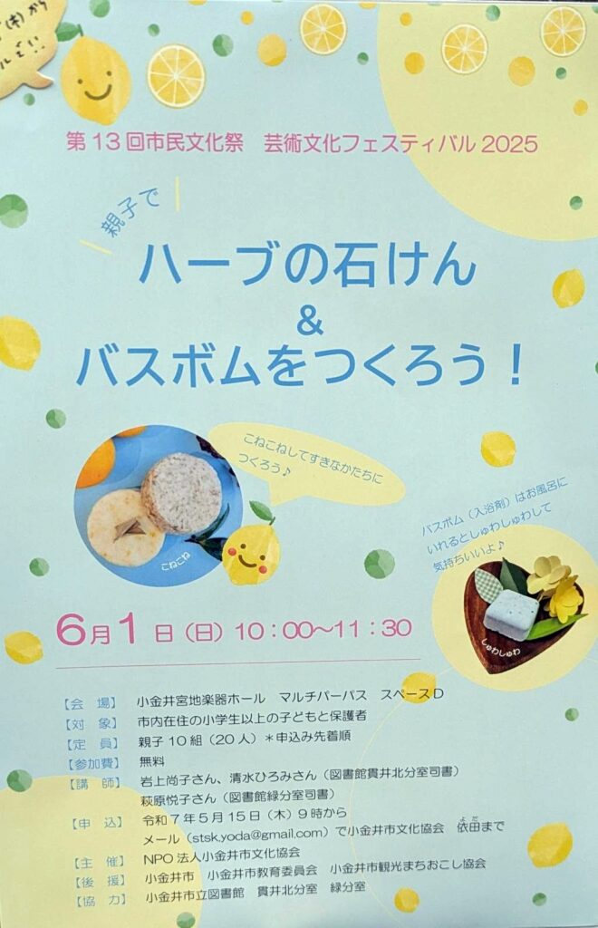 【市民文化祭】親子でハーブの石けん&バスボムをつくろう