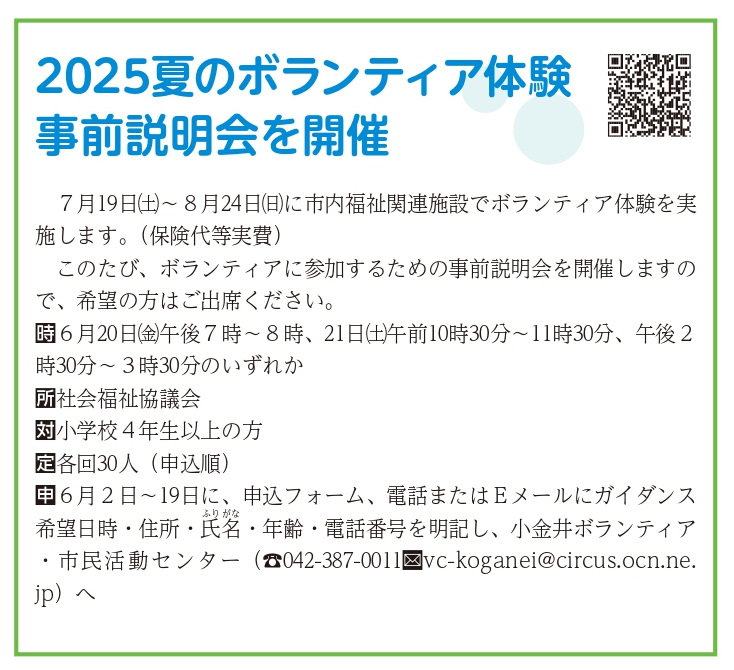 体験期間:2025/7/19(土)-8/24(日) 体験先:市内福祉関連施設等 参加費:350円 対象:小学4年生〜社会人まで。事前ガイダンスに参加できる方。