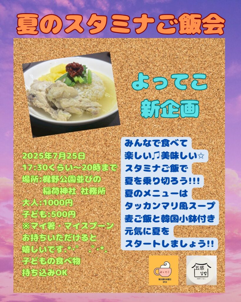 ◆2025/7/25(金)17:30-20:00 稲荷神社にて(梶野公園並び) 主催:よってこ