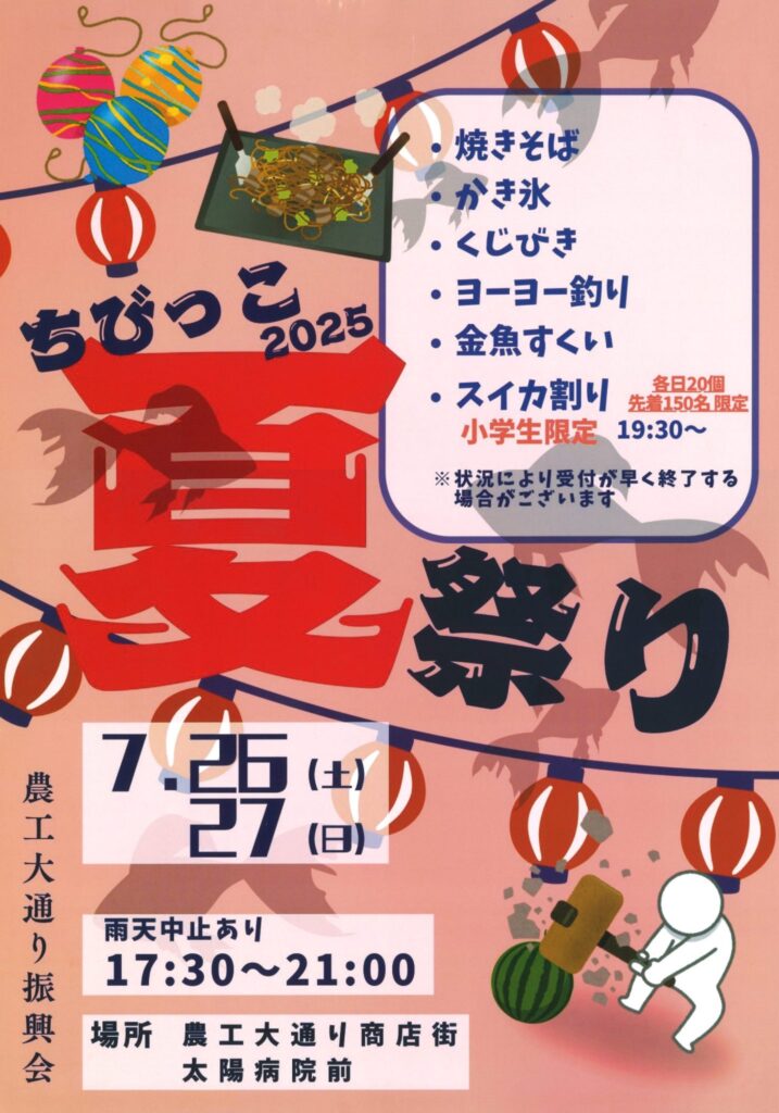 ◆2024/7/26(土), 27(日)17:30-21:00 農工大通り商店街太陽病院前