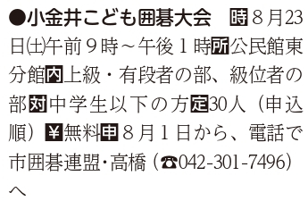 ◆2025/8/23土) 9:00-13:00 公民館東分館にて 主催:小金井市囲碁連盟