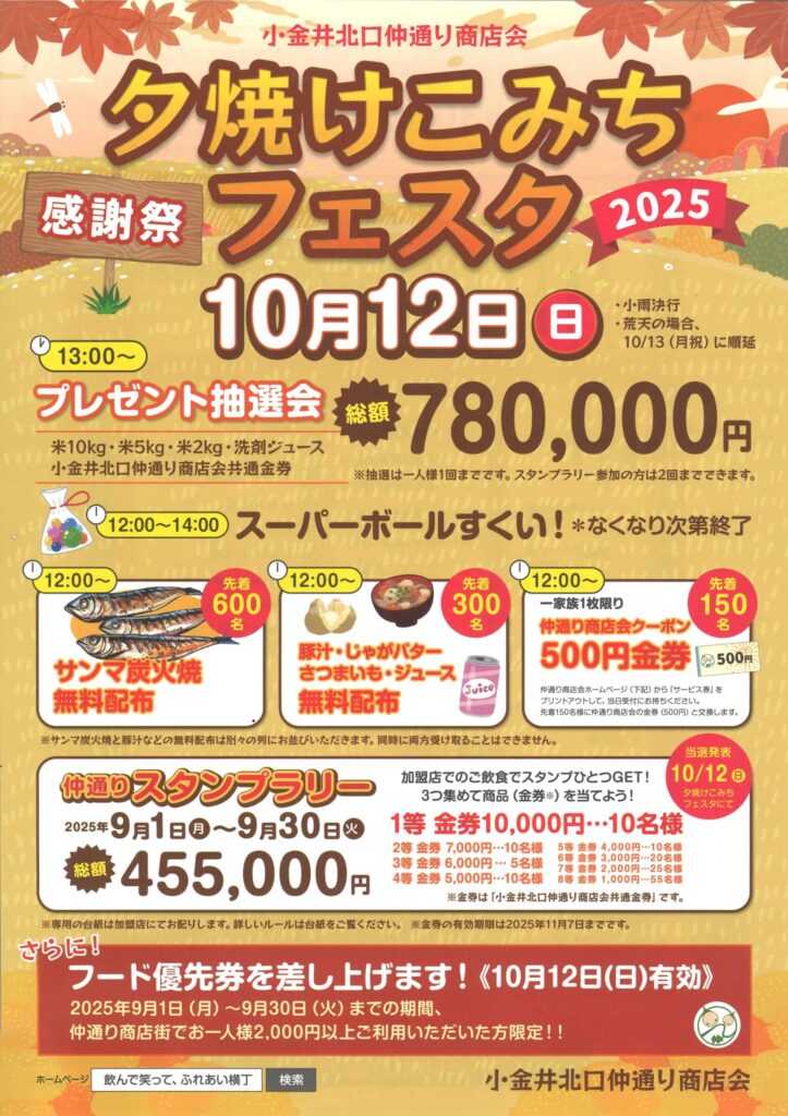 ◆2025/10/12(日)12:00~ 小金井北口中通り商店街にて 主催:小金井北口中通り商店会