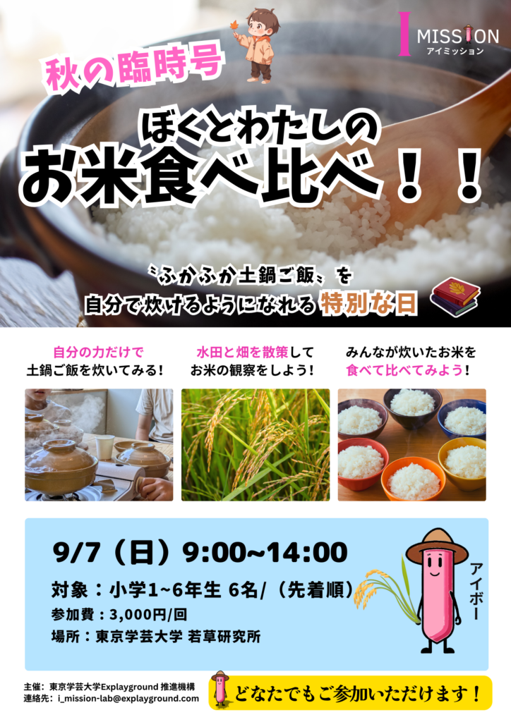 ◆2025/9/7(日)9:00-14:00 東京学芸大学にて 参加費:3,000円 主催:I MISION