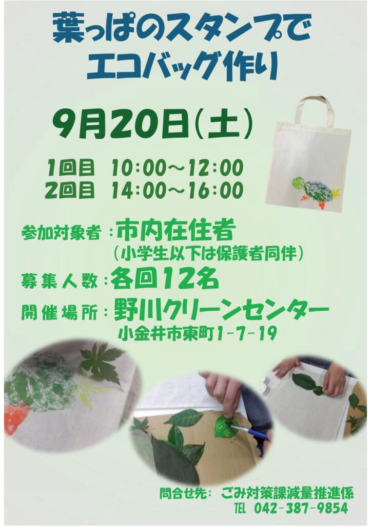 ◆2025/9/20(土)10:00-12:00, 14:00-16:00 野川クリーンセンターにて
