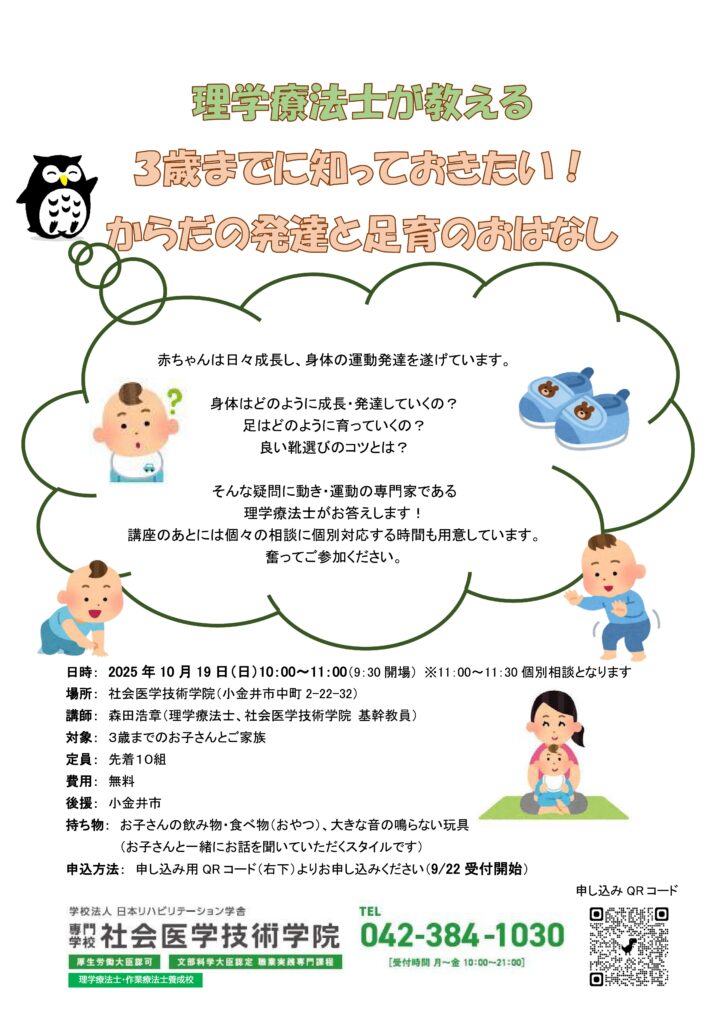 ◆2025/10/19(日)10:00-11:00 社会医学技術学院(中町2-22-32)にて