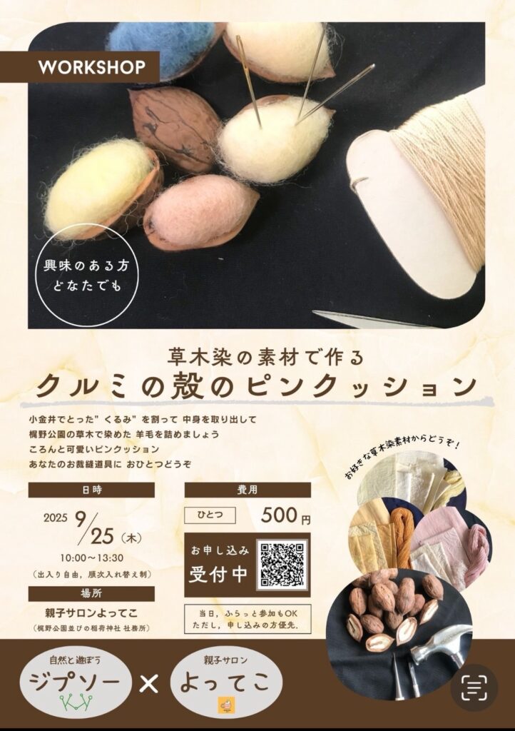 【ワークショップ】草木染の素材で作るクルミの殻のピンクッション