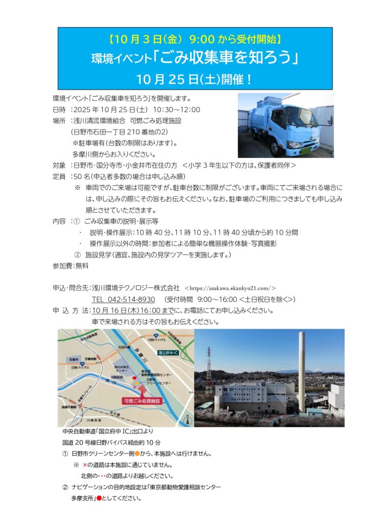 ◆2025/10/25(土)10:30-12:00 浅川清流環境組合 可燃ごみ処理施設(日野市石田町1-210-2)にて