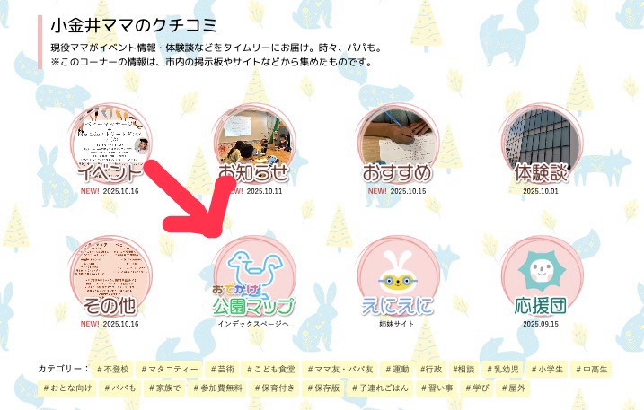 皆さん、「のびのびーの!」サイトに「おでかけ公園MAP」があるのは知っていますか?