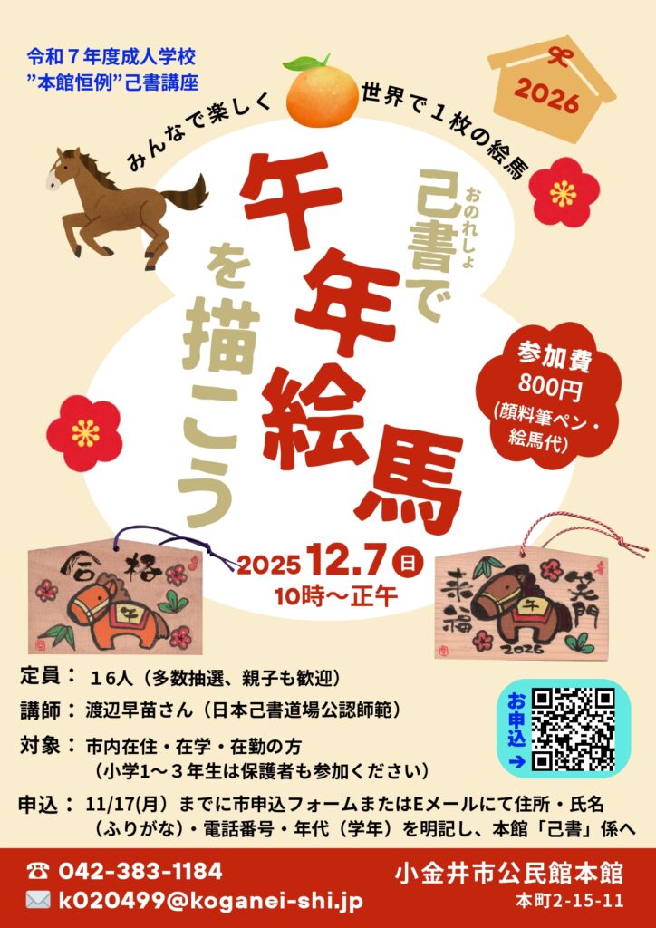 ◆2025/12/7(日)10:00-12:00 公民館本館にて 参加費:800円 主催:公民館本館