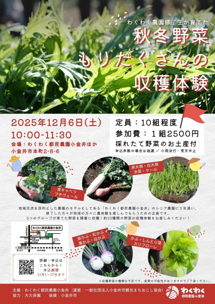 ◆2025/12/6(土)10:00-11:30 わくわく都民農園ほかにて 参加費:2500円 主催:わくわく都民農園