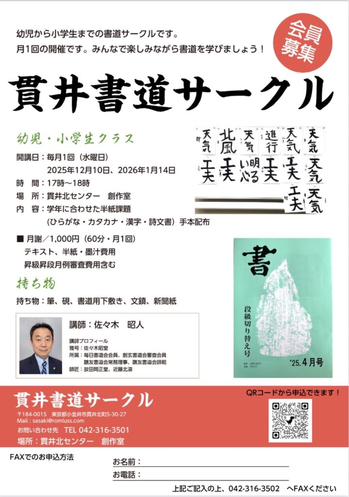 ◆2025/12/10, 2026/1/14(日)17:00-18:00 公民館貫井北分館にて 参加費:1000円