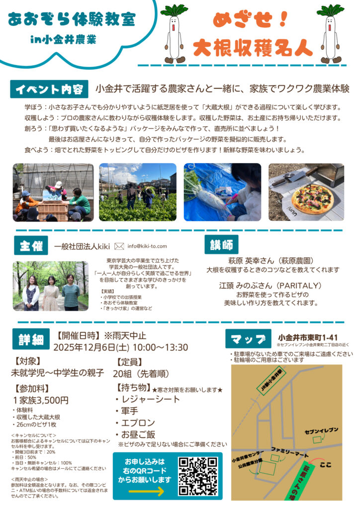 ◆2025/12/6(土)10:00-13:30 萩原農園にて 参加費:3500円 主催:一般社団法人kiki