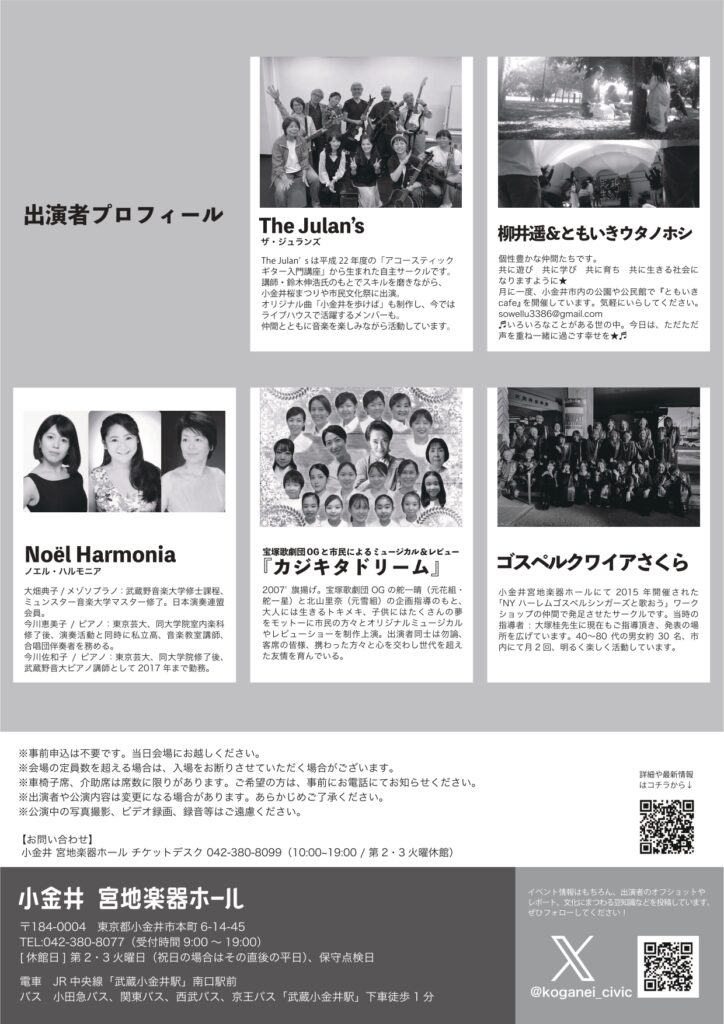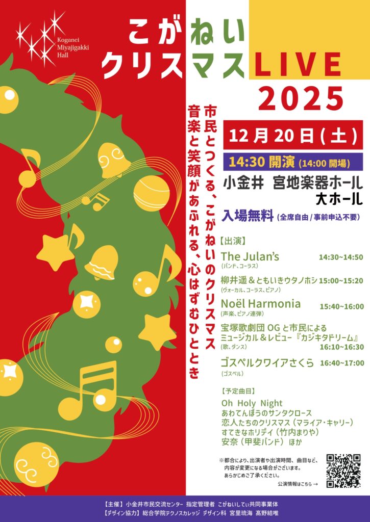 ◆2025/12/20(土)14:30- 宮地楽器ホールにて 参加費:無料 主催:こがねいしてぃ共同事業体
