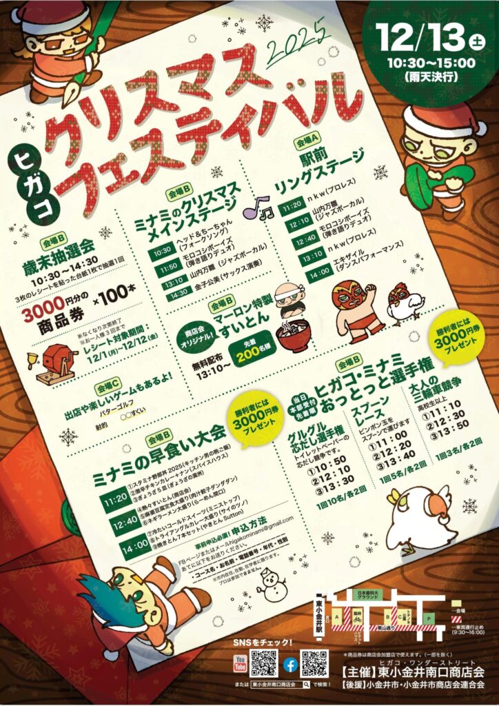 もうすぐクリスマスですね♪ 街中でクリスマスソングを聞くとなんだかワクワクします。 小金井ではいろんなクリスマスイベントがあります。 そんなクリスマス情報をまとめてみました。 ※画像をクリックで記事ページに行けます。 ◆フェス◆ ◆ワークショップ◆ ◆コンサート◆ ◆その他◆