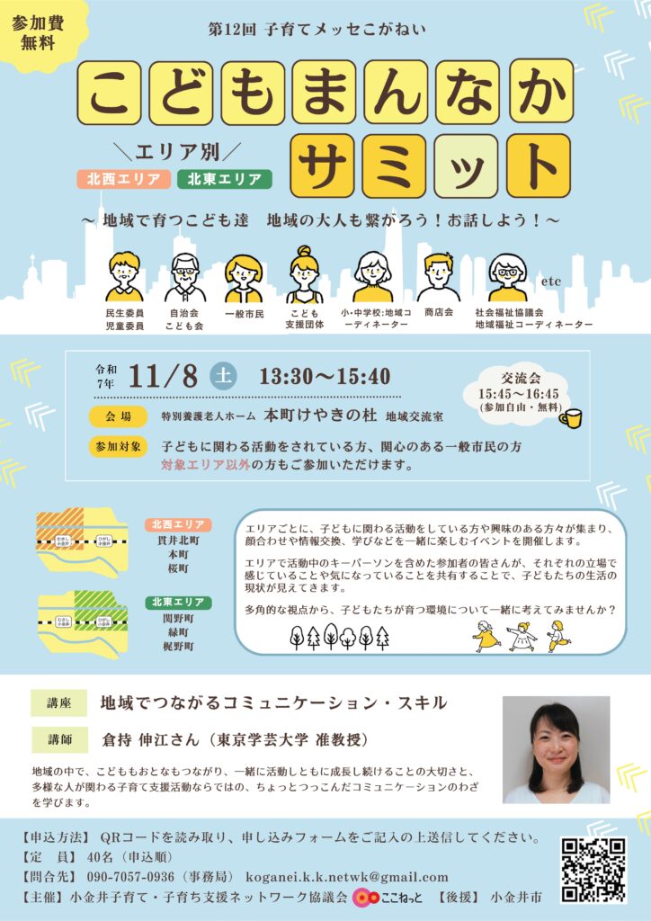 【報告】第12回子育てメッセこがねい 「こどもまんなかサミット~地域で育つこども達 地域の大人も繋がろう!お話しよう!~」