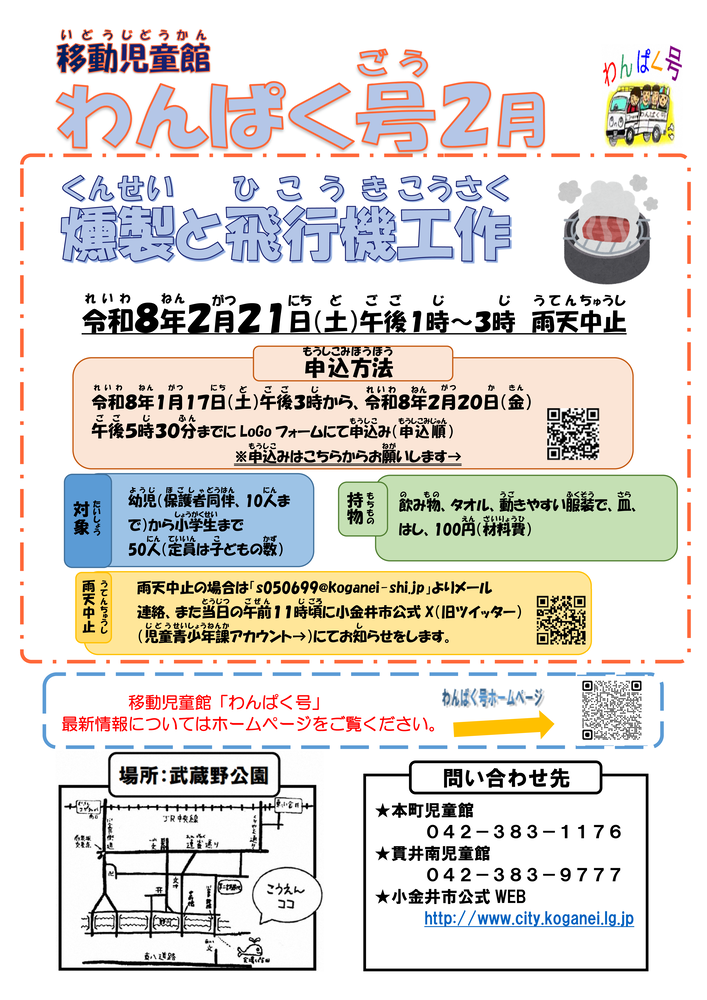 ◆2026/2/21(土)13:00-15:00 武蔵野公園にて 参加費:100円 主催:小金井市