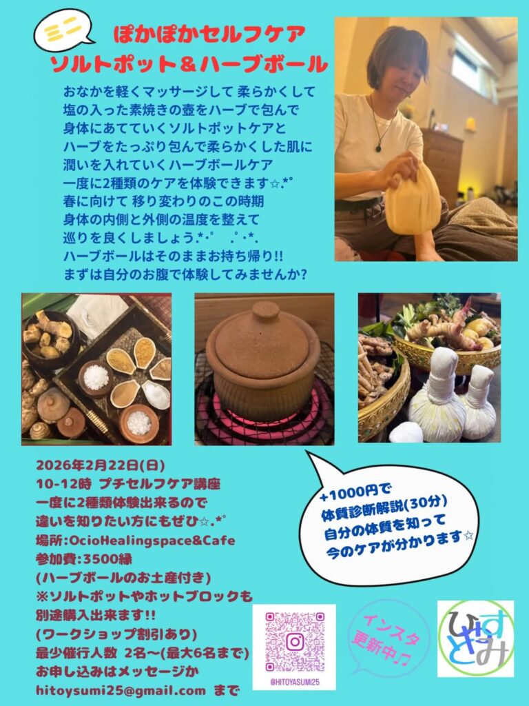 ◆2026/2/22(日)10:00-12:00 OcioHealing space&Cafe(緑町1丁目1-23)にて 参加費:3500円 主催:ひとやすみ お問合せ:hitoyasumi25@gmail.com >Instagramはこちら