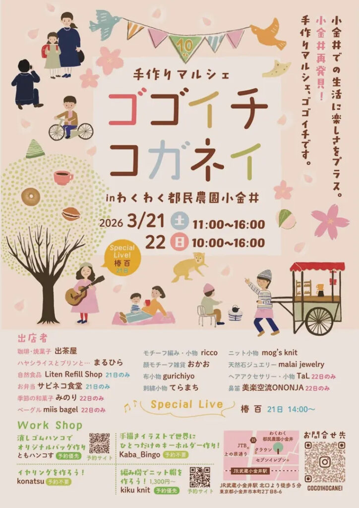◆2026/3/21(土)11:00-16:00, 22(日)10:00-16:00 わくわく都民農園にて(本町2-8-6) 参加費:無料 主催:MUSASHINO MIDTOWN >詳しくはこちら >Instagramはこちら