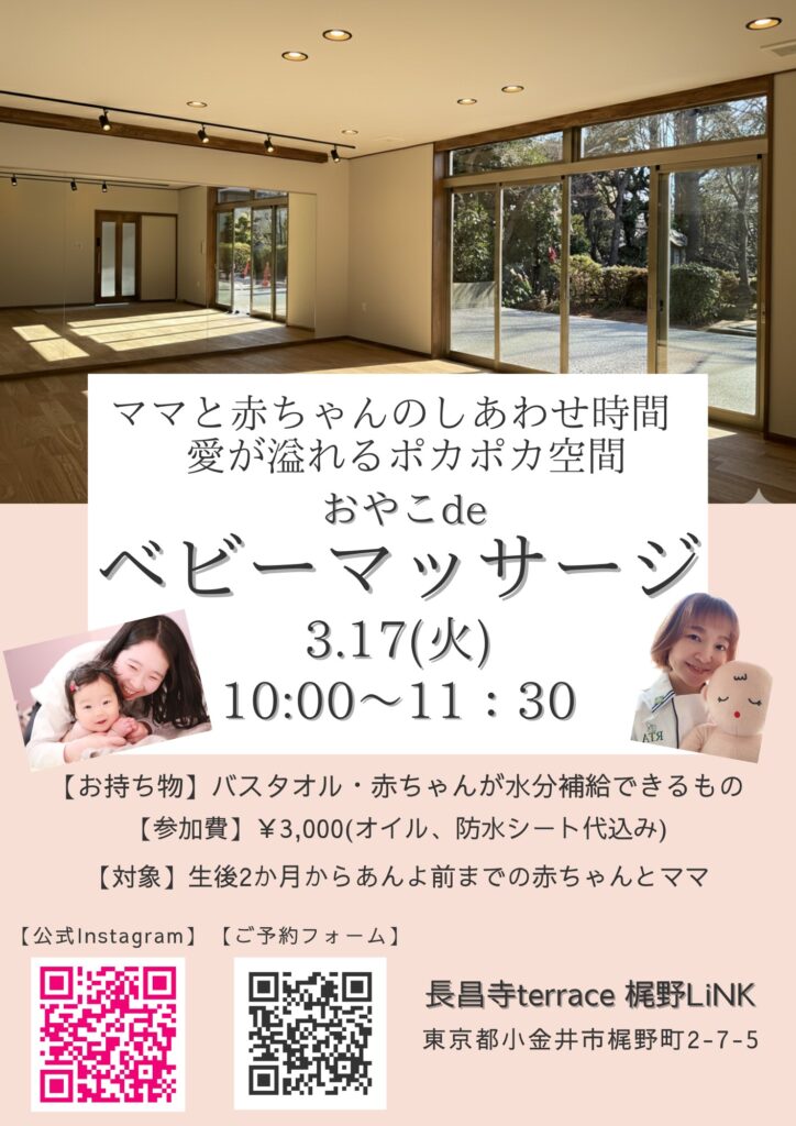 ◆2026/3/17(火)10:00-11:30 長昌寺terraceにて(梶野町2-7-5) 参加費:3000円 主催:acha baby