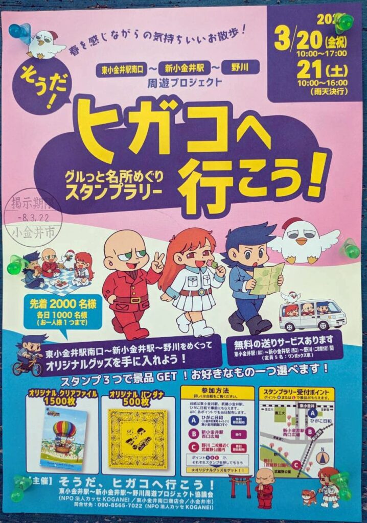 ◆2026/3/20(金・祝)10:00-17:00, 21(土)10:00-16:00 東小金井駅〜新小金井駅〜野川にて 主催:そうだ、ヒガコへ行こう!東小金井駅〜新小金井駅〜野川周遊プロジェクト協議会 >主催者はこちら