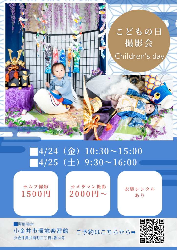 ◆2026/4/24(金)10:30-15:00,4/25(土)9:30-16:00 環境楽習館にて 料金:セルフ撮影1500円,カメラマン撮影2000円~ 主催:NAN Instagramはこちら 申込フォーム
