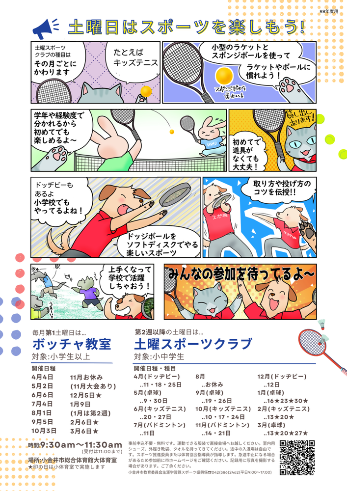 ◆毎週土曜日 9:30-11:30 総合体育館にて