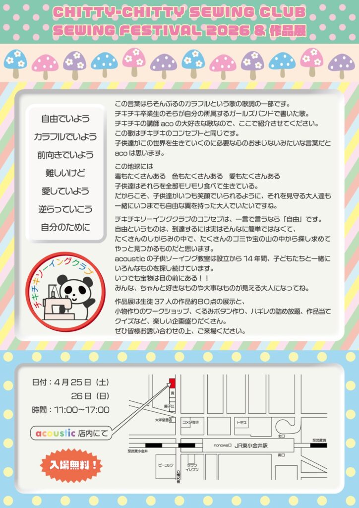 ◆2026/4/25(土),4/26(日)11:00-17:00 acousticにて(緑町1-6-61)