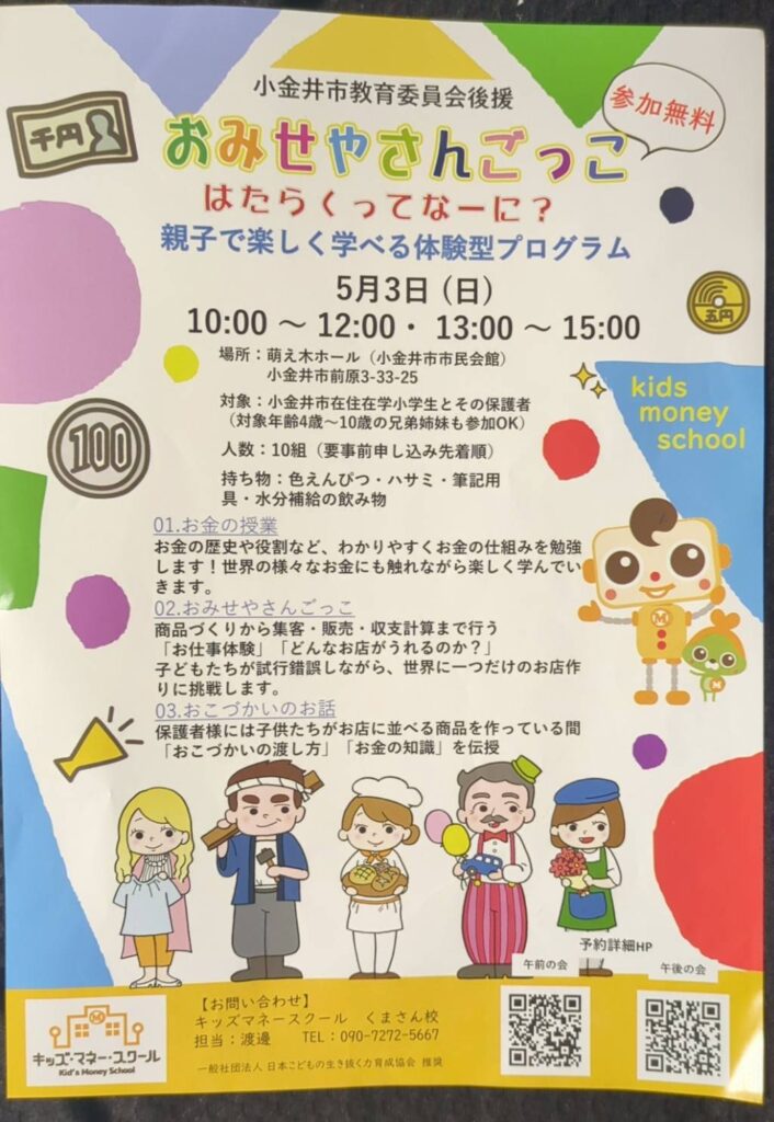 参加費:無料 主催:キッズマネースクール くまさん校