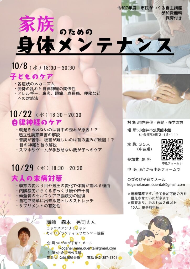 家族のための身体メンテナンス講座(参加費無料、保育あり)