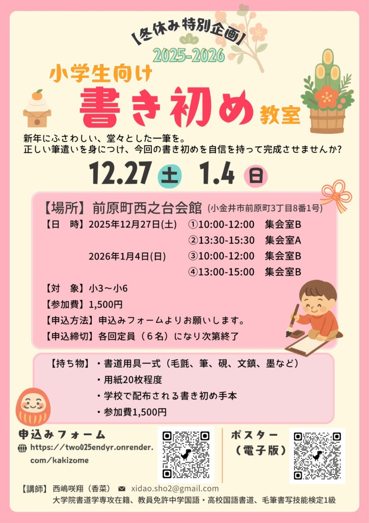 【冬休み企画】書き初め教室