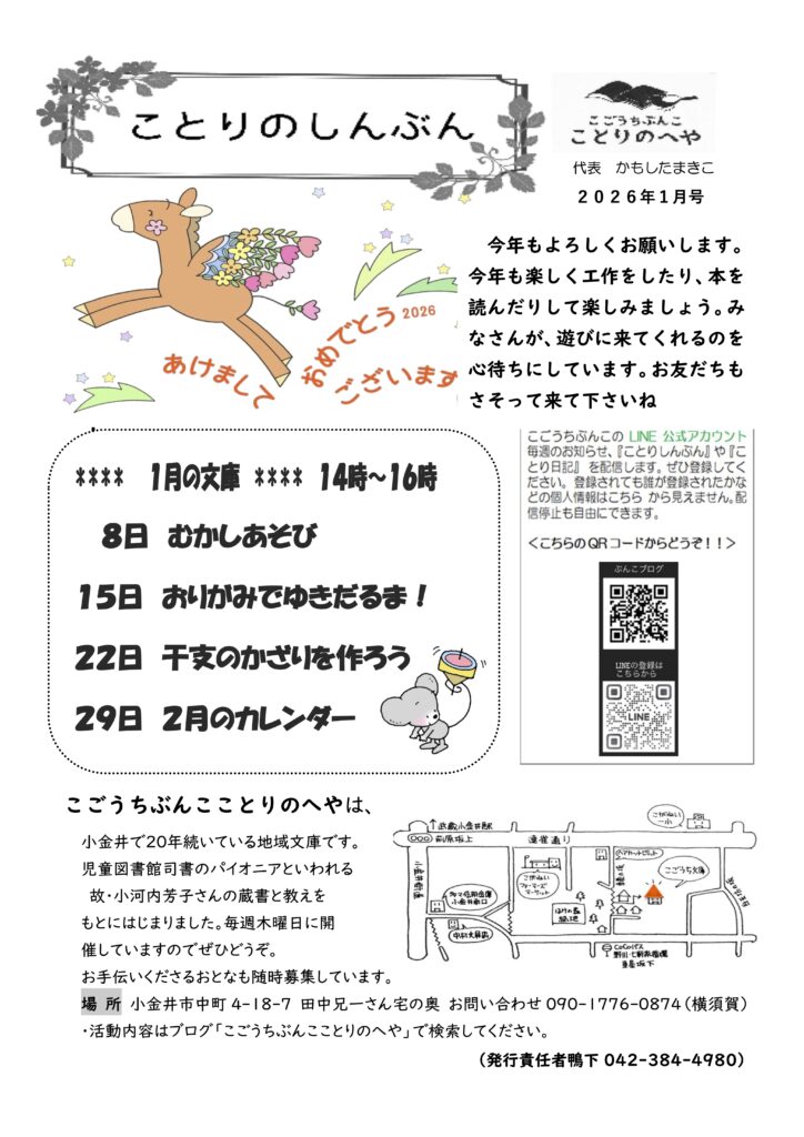 (木)14:00-16:00 ことりのへや(中町4-18-7)にて 参加費:無料 主催:こごうちぶんこ