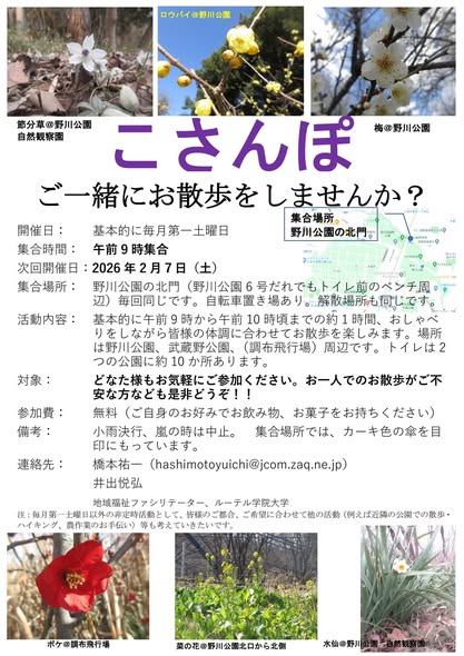 ◆2026/2/7(土) 9:00-10:00 野川公園周辺にて 参加費:無料
