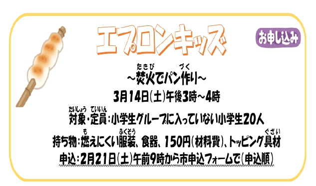 エプロンキッズ 3:00 PM – 4:00 PM2026年3月14日 ◆2026/3/14(土)15:00-16:00 貫井南児童館にて 参加費:150円 主催:貫井南児童館 申し込みフォーム カレンダーを表示