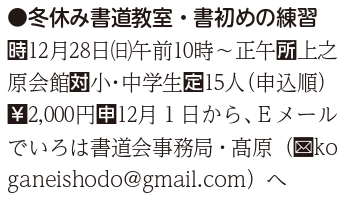 ◆2025/12/28(日)10:00-12:00 上之原会館にて 参加費:2000円 主催:いろは書道会
