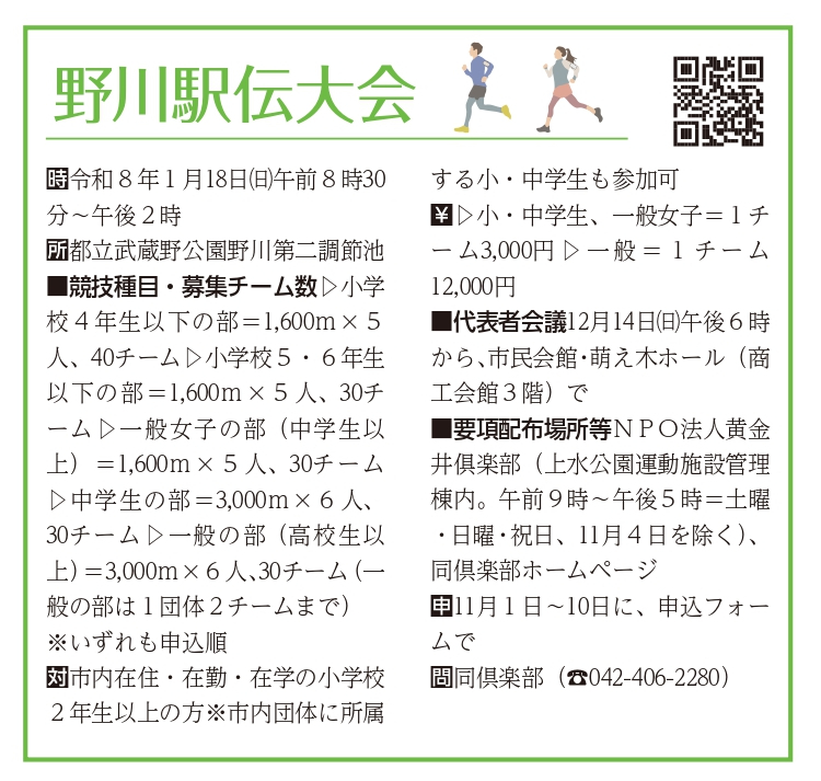 ◆2026/1/18(日)8:30-14:00 都立武蔵野公園野川第二調節池付近にて